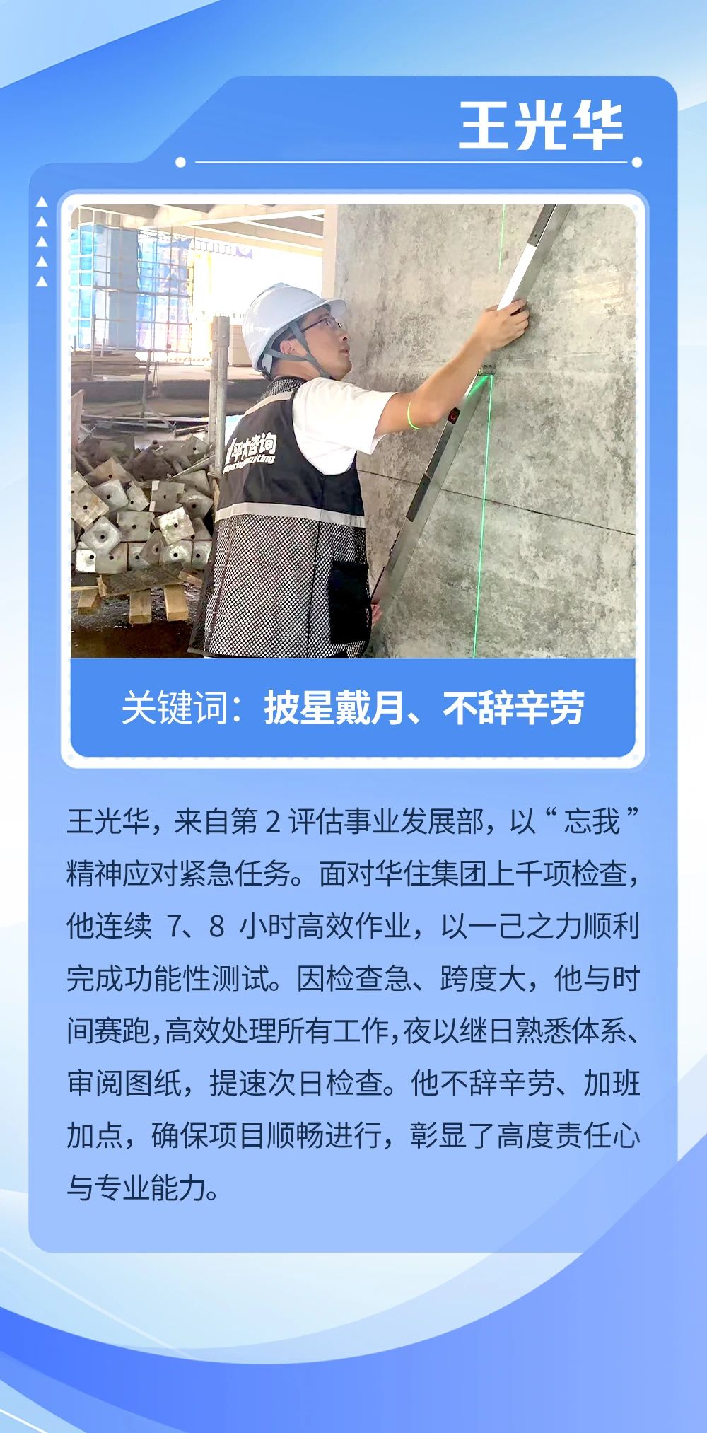 他們憑借深厚的專業(yè)知識、豐富的實踐經(jīng)驗以及高度的責(zé)任心,成功應(yīng)對了華住集團各項嚴格而復(fù)雜的質(zhì)檢評估挑戰(zhàn)。面對繁重的任務(wù),他們不僅毫無怨言,反而以飽滿的熱情和堅定的信念,確保了每一個項目的順利進行和最終的成功交付。